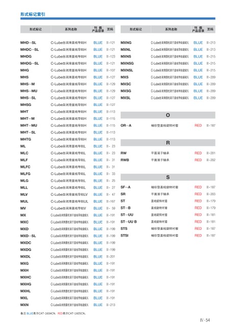 形式标记索引形式标记系列名称刊载产品目录页码形式标记系列名称刊载产品目录页码MHD…SLC-Lube自润滑直线导轨HBLUEⅡ-121MXNGC-Lube自润滑圆柱滚子直线导轨超级XBLUEⅡ-213MHDC…SLC-Lube自润滑直线导轨HBLUEⅡ-121MXNLC-Lube自润滑圆柱滚子直线导轨超级XBLUEⅡ-213MHDGC-Lube自润滑直线导轨HBLUEⅡ-123MXNSC-Lube自润滑圆柱滚子直线导轨超级XBLUEⅡ-215MHDG…SLC-Lube自润滑直线导轨HBLUEⅡ-121MXNSGC-Lube自润滑圆柱滚子直线导轨超级XBLUEⅡ-215C-Lube自润滑直线导轨HBLUEⅡ-107MXNSLC-Lube自润滑圆柱滚子直线导轨超级XBLUEⅡ-215C-Lube自润滑直线导轨HBLUEⅡ-127MXSC-Lube自润滑圆柱滚子直线导轨超级XBLUEⅡ-209C-Lube自润滑直线导轨HBLUEⅡ-129MXSCC-Lube自润滑圆柱滚子直线导轨超级XBLUEⅡ-209C-Lube自润滑直线导轨HBLUEⅡ-129MXSGC-Lube自润滑圆柱滚子直线导轨超级XBLUEⅡ-209C-Lube自润滑直线导轨HBLUEⅡ-127MXSLC-Lube自润滑圆柱滚子直线导轨超级XBLUEⅡ-209C-Lube自润滑直线导轨HBLUEⅡ-127C-Lube自润滑直线导轨HBLUEⅡ-113C-Lube自润滑直线导轨HBLUEⅡ-115OC-Lube自润滑直线导轨HBLUEⅡ-115OR…A袖珍型直线旋转衬套REDⅡ-187MHGMHSMHS…MMHS…MUMHS…SLMHSGMHTMHT…MMHT…MUMHT…SLMHTGMLMLCMLFMLFCMLFGMLGMLLMLVMULMVMXMXCMXDC-Lube自润滑直线导轨HBLUEⅡ-113C-Lube自润滑直线导轨HBLUEⅡ-113C-Lube自润滑直线导轨LBLUEⅡ-23C-Lube自润滑直线导轨LBLUEⅡ-23RWC-Lube自润滑直线导轨LBLUEⅡ-31RWBC-Lube自润滑直线导轨LBLUEⅡ-31C-Lube自润滑直线导轨LBLUEⅡ-33C-Lube自润滑直线导轨LBLUEⅡ-25R平面滚子轴承平面滚子轴承SC-Lube自润滑直线导轨LBLUEⅡ-27SF…A袖珍型直线旋转衬套C-Lube自润滑直线导轨LVBLUEⅡ-47C-Lube自润滑直线导轨ULBLUEⅡ-167C-Lube自润滑直线导轨VBLUEⅡ-59C-Lube自润滑圆柱滚子直线导轨超级XBLUEⅡ-191SRSTST…BST…UUC-Lube自润滑圆柱滚子直线导轨超级XBLUEⅡ-191ST…UUB平面滚子轴承直线旋转衬套直线旋转衬套直线旋转衬套直线旋转衬套STSSTSI袖珍型直线旋转衬套袖珍型直线旋转衬套C-Lube自润滑圆柱滚子直线导轨超级XBLUEⅡ-199MXD…SLC-Lube自润滑圆柱滚子直线导轨超级XBLUEⅡ-199MXDCMXDGMXDLMXGMXHMXHCMXHGMXHLMXLMXNC-Lube自润滑圆柱滚子直线导轨超级XBLUEⅡ-199C-Lube自润滑圆柱滚子直线导轨超级XBLUEⅡ-199C-Lube自润滑圆柱滚子直线导轨超级XBLUEⅡ-201C-Lube自润滑圆柱滚子直线导轨超级XBLUEⅡ-191C-Lube自润滑圆柱滚子直线导轨超级XBLUEⅡ-191C-Lube自润滑圆柱滚子直线导轨超级XBLUEⅡ-191C-Lube自润滑圆柱滚子直线导轨超级XBLUEⅡ-191C-Lube自润滑圆柱滚子直线导轨超级XBLUEⅡ-191C-Lube自润滑圆柱滚子直线导轨超级XBLUEⅡ-191C-Lube自润滑圆柱滚子直线导轨超级XBLUEⅡ-213备注BLUE表示CAT-1604CN、RED表示CAT-1605CN。REDⅡ-201REDⅡ-202REDⅡ-187REDⅡ-203REDⅡ-179REDⅡ-179REDⅡ-181REDⅡ-181REDⅡ-187REDⅡ-187Ⅳ-54