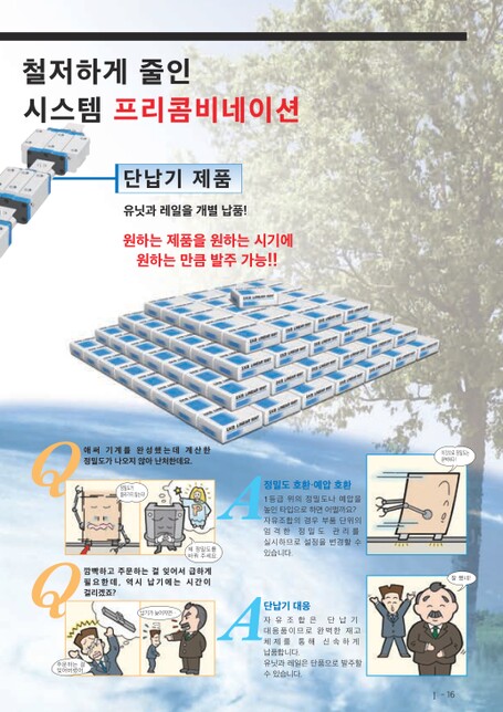 철저하게줄인시스템프리콤비네이션단납기제품유닛과레일을개별납품!유닛과레일을개별납품!원하는제품을원하는시기에원하는만큼발주가능!!Q애써기계를완성했는데계산한정밀도가나오지않아난처한데요.A정밀도호환·예압호환1등급위의정밀도나예압을높인타입으로하면어떨까요?엄격한정밀도관리를자유조합의경우부품단위의정밀도가올라가지않는다!Q깜빡하고주문하는걸잊어서급하게필요한데,역시납기에는시간이걸리겠죠?납기가늦어지면…단납기대응제정밀도를바꿔주세요.있습니다.실시하므로설정을변경할수A자유조합은단납기대응품이므로완벽한재고체제를통해신속하게납품합니다.주문하는걸잊어버렸어.유닛과레일은단품으로발주할수있습니다.이것으로정밀도는완벽하다!잘했네!1-16