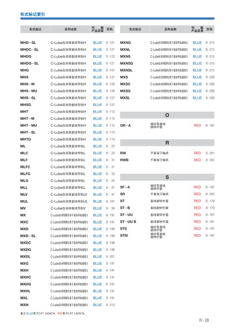 形式标记索引形式标记系列名称刊载产品目录页码形式标记系列名称刊载产品目录页码MHD…SLC-Lube自润滑直线导轨HBLUEⅡ-121MXNGC-Lube自润滑圆柱滚子直线导轨超级XBLUEⅡ-213MHDC…SLC-Lube自润滑直线导轨HBLUEⅡ-121MXNLC-Lube自润滑圆柱滚子直线导轨超级XBLUEⅡ-213MHDGC-Lube自润滑直线导轨HBLUEⅡ-123MXNSC-Lube自润滑圆柱滚子直线导轨超级XBLUEⅡ-215MHDG…SLC-Lube自润滑直线导轨HBLUEⅡ-121MXNSGC-Lube自润滑圆柱滚子直线导轨超级XBLUEⅡ-215C-Lube自润滑直线导轨HBLUEⅡ-107MXNSLC-Lube自润滑圆柱滚子直线导轨超级XBLUEⅡ-215C-Lube自润滑直线导轨HBLUEⅡ-127MXSC-Lube自润滑圆柱滚子直线导轨超级XBLUEⅡ-209C-Lube自润滑直线导轨HBLUEⅡ-129MXSCC-Lube自润滑圆柱滚子直线导轨超级XBLUEⅡ-209C-Lube自润滑直线导轨HBLUEⅡ-129MXSGC-Lube自润滑圆柱滚子直线导轨超级XBLUEⅡ-209C-Lube自润滑直线导轨HBLUEⅡ-127MXSLC-Lube自润滑圆柱滚子直线导轨超级XBLUEⅡ-209MHGMHSMHS…MMHS…MUMHS…SLMHSGMHTMHT…MMHT…MUMHT…SLMHTGMLMLCMLFMLFCMLFGMLGMLLMLVMULMVMXMXCMXDMXD…SLC-Lube自润滑圆柱滚子直线导轨超级XBLUEⅡ-199MXDCMXDGMXDLMXGMXHMXHCMXHGMXHLMXLMXNC-Lube自润滑圆柱滚子直线导轨超级XBLUEⅡ-199C-Lube自润滑圆柱滚子直线导轨超级XBLUEⅡ-199C-Lube自润滑圆柱滚子直线导轨超级XBLUEⅡ-201C-Lube自润滑圆柱滚子直线导轨超级XBLUEⅡ-191C-Lube自润滑圆柱滚子直线导轨超级XBLUEⅡ-191C-Lube自润滑圆柱滚子直线导轨超级XBLUEⅡ-191C-Lube自润滑圆柱滚子直线导轨超级XBLUEⅡ-191C-Lube自润滑圆柱滚子直线导轨超级XBLUEⅡ-191C-Lube自润滑圆柱滚子直线导轨超级XBLUEⅡ-191C-Lube自润滑圆柱滚子直线导轨超级XBLUEⅡ-213备注BLUE表示CAT-1604CN、RED表示CAT-1605CN。C-Lube自润滑直线导轨HBLUEⅡ-127C-Lube自润滑直线导轨HBLUEⅡ-113C-Lube自润滑直线导轨HBLUEⅡ-115C-Lube自润滑直线导轨HBLUEⅡ-115OR…AC-Lube自润滑直线导轨HBLUEⅡ-113C-Lube自润滑直线导轨HBLUEⅡ-113C-Lube自润滑直线导轨LBLUEⅡ-23C-Lube自润滑直线导轨LBLUEⅡ-23RWC-Lube自润滑直线导轨LBLUEⅡ-31RWBC-Lube自润滑直线导轨LBLUEⅡ-31C-Lube自润滑直线导轨LBLUEⅡ-33C-Lube自润滑直线导轨LBLUEⅡ-25C-Lube自润滑直线导轨LBLUEⅡ-27SF…AC-Lube自润滑直线导轨LVBLUEⅡ-47C-Lube自润滑直线导轨ULBLUEⅡ-167C-Lube自润滑直线导轨VBLUEⅡ-59C-Lube自润滑圆柱滚子直线导轨超级XBLUEⅡ-191SRSTST…BST…UUC-Lube自润滑圆柱滚子直线导轨超级XBLUEⅡ-191ST…UUBC-Lube自润滑圆柱滚子直线导轨超级XBLUEⅡ-199STSSTSIO袖珍型直线旋转衬套R平面滚子轴承平面滚子轴承S袖珍型直线旋转衬套平面滚子轴承直线旋转衬套直线旋转衬套直线旋转衬套直线旋转衬套袖珍型直线旋转衬套袖珍型直线旋转衬套REDⅡ-187REDⅡ-201REDⅡ-202REDⅡ-187REDⅡ-203REDⅡ-179REDⅡ-179REDⅡ-181REDⅡ-181REDREDⅡ-187Ⅱ-187Ⅳ-28